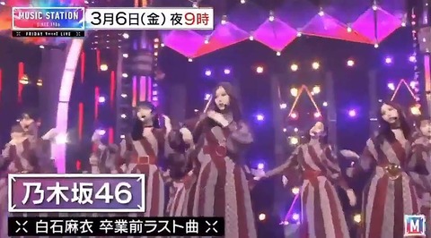 16日放送のテレビ朝日系『ミュージックステーション2時間SP』(よる8時~)に生出演。白石麻衣は、卒業前最後の出演となる。